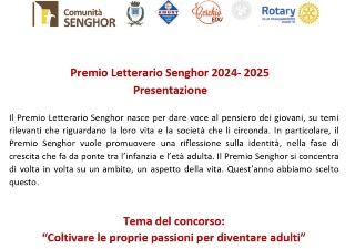 Il Premio Letterario intende dare voce al pensiero dei giovani. In particolare, il Premio Senghor vuole promuovere una riflessione sulla identità, in questa fase della vita tanto importante, che fa da ponte tra l’infanzia e l’età adulta. Essendo il tema della identità giovanile molto vasto, il Premio Senghor si concentra di volta su un aspetto, e suggerisce uno o più libri di riferimento.
